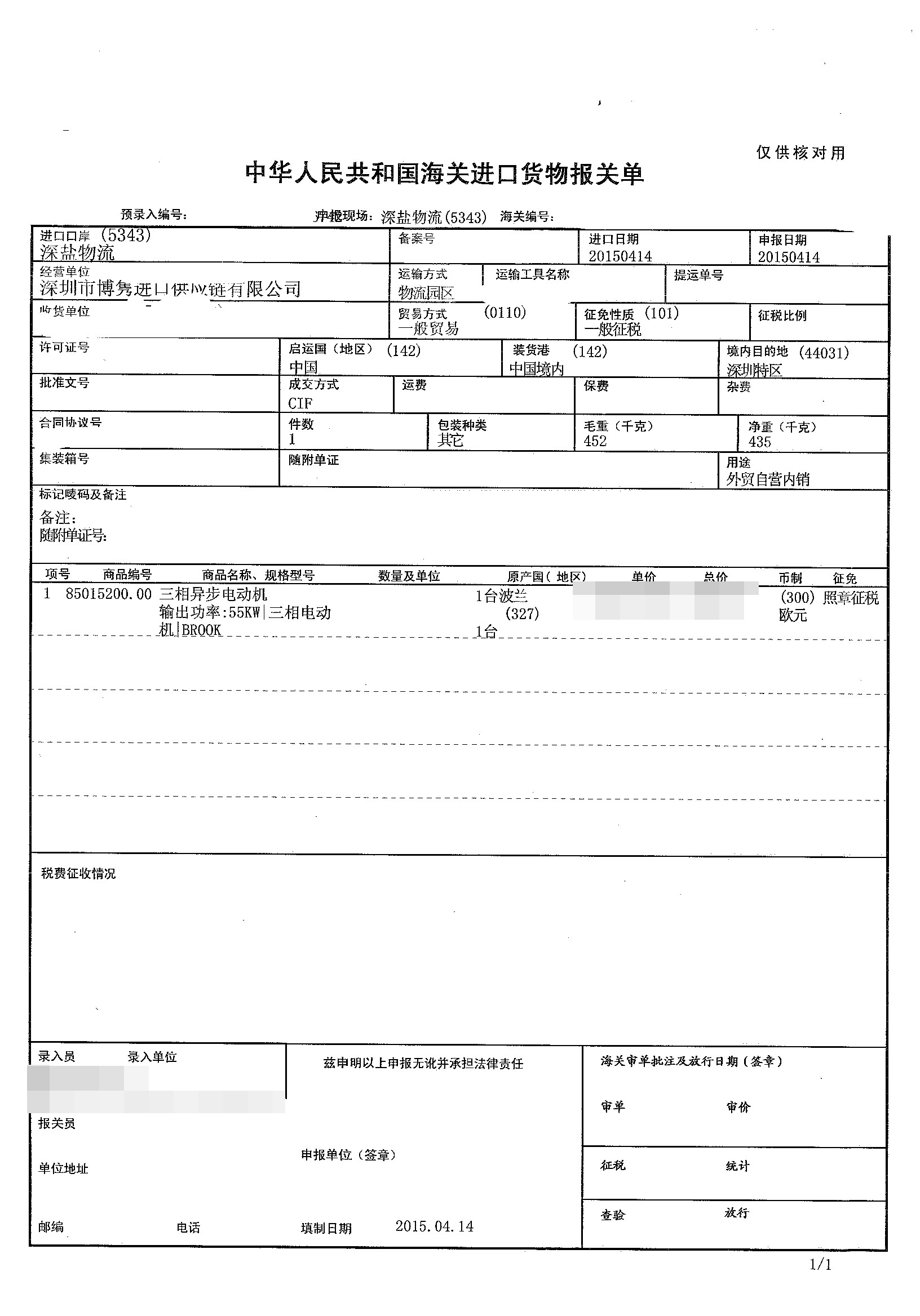 三、三相異步電動機進口報關案例展示