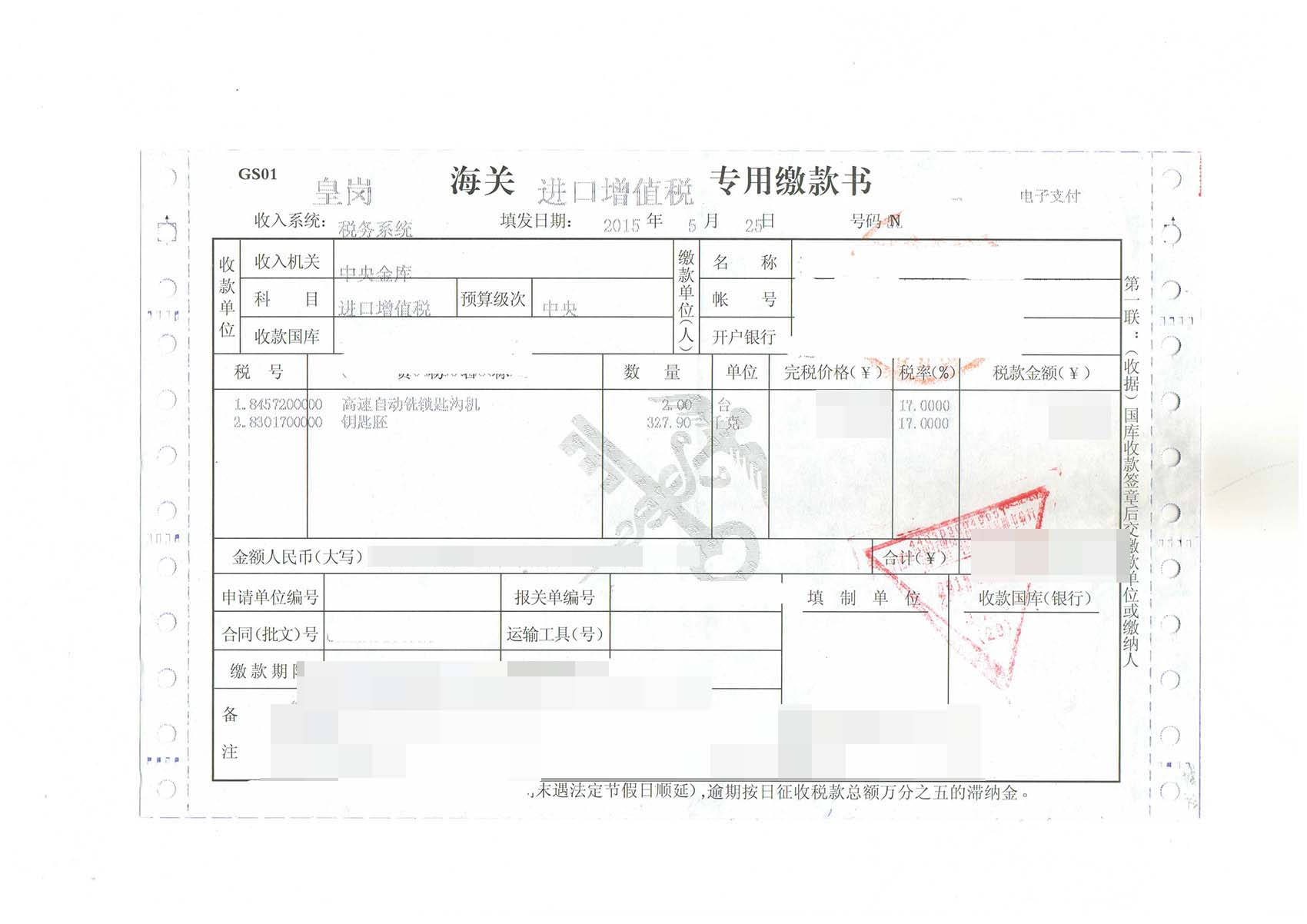 三、高速自動銑鎖匙溝機進口報關案例展示