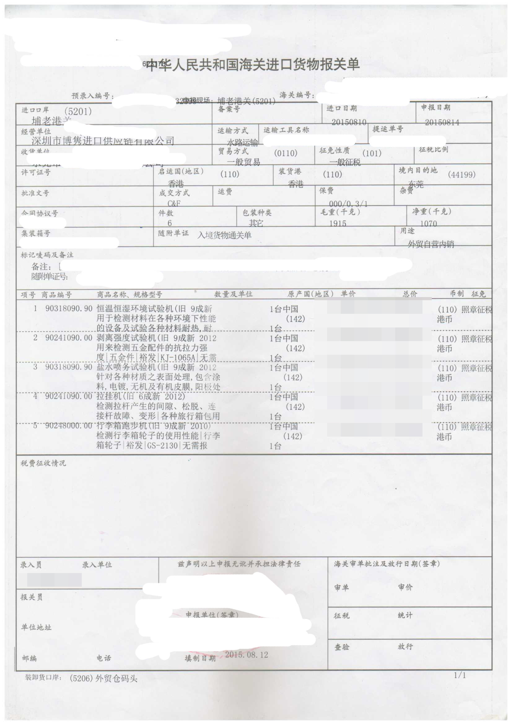 【文章標題】:試驗機(舊 9成新)進口報關手續及案例【建議收藏】 http://www.liangxinjiaoyu.com/lm9/100.html 轉載請注明出處