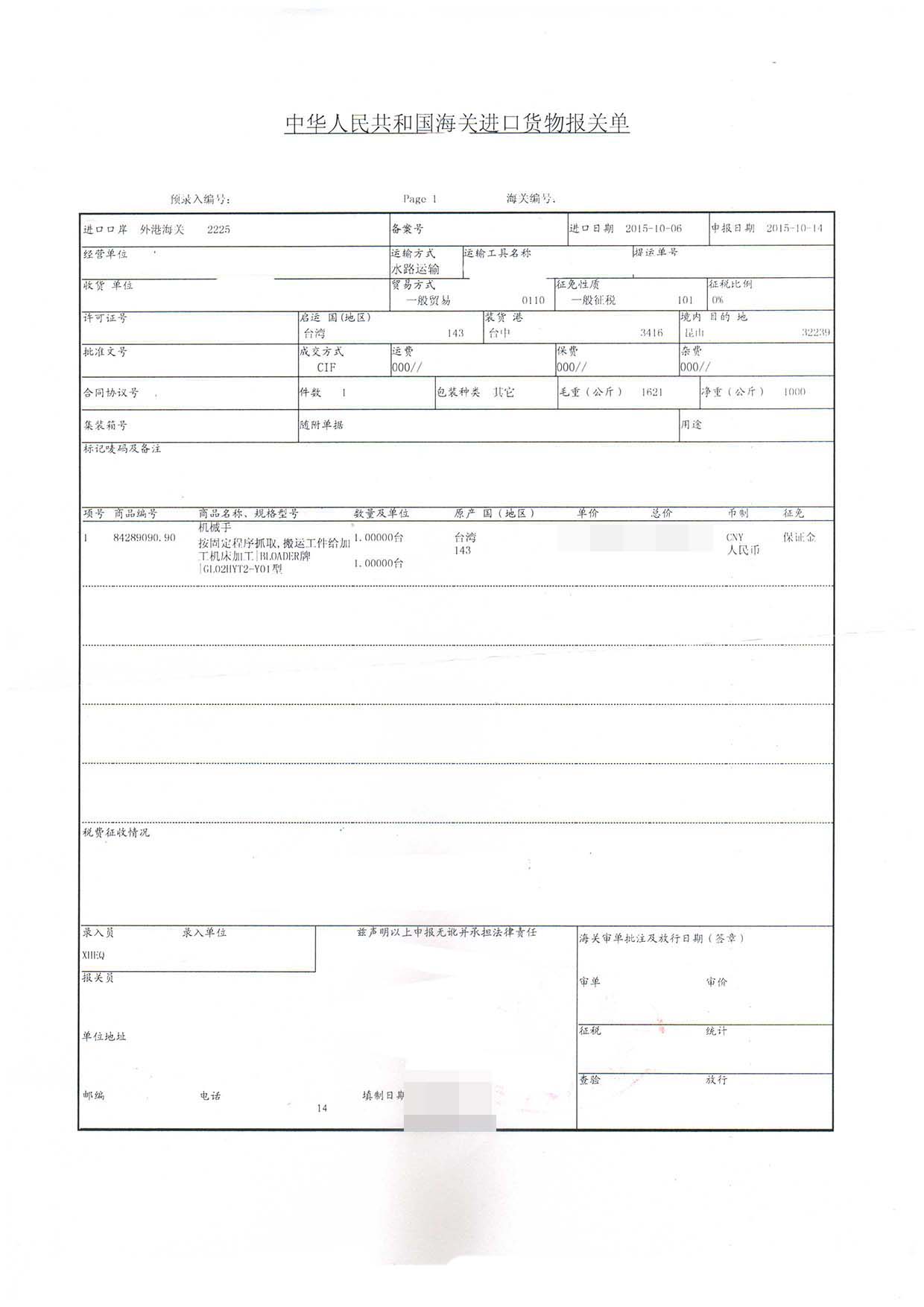 【文章標題】:機械手進口報關手續及案例【建議收藏】 http://www.liangxinjiaoyu.com/lm9/70.html 轉載請注明出處