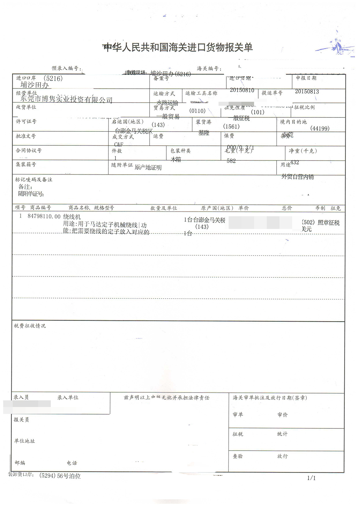 三、繞線機(jī)進(jìn)口報關(guān)案例展示